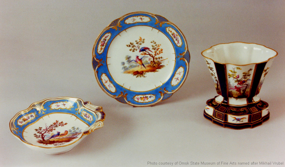 Kompotier. Sevr. 1765. Weichporzellan. Teller. Sevr. 1765. Weichporzellan. Vase- Jardiniere . Sevr. 1760. Weichporzellan