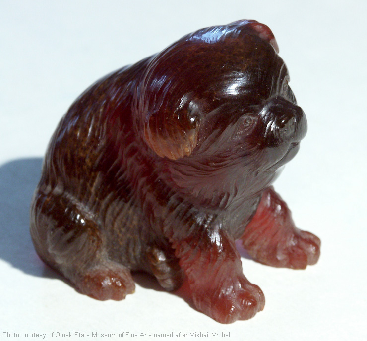 Hund. Russland. Petersburg. Firma K. Faberge. Ende des XIX. Anfang des XX. Jahrhunderts. Bernstein, Schnitzerei