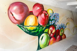 Летом 2021-го Омску подарили сразу несколько масштабных картин. Тематические граффити появились в подземном переходе у «Яблоньки», на стене арт-галереи «Квадрат» и торгового центра «Мега».