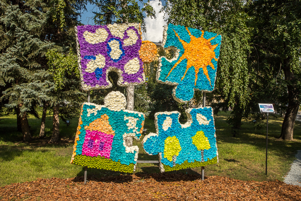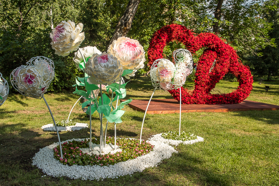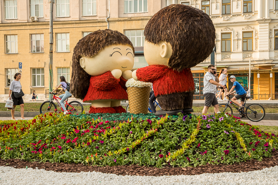 Традиционно в историческом центре города ухожен и украшен каждый уголок Цветочные пазлы как бы подсказывают, где находится специальная детская площадка Два сердца — это арт-объект «Время любить»: похоже названы многие композиции