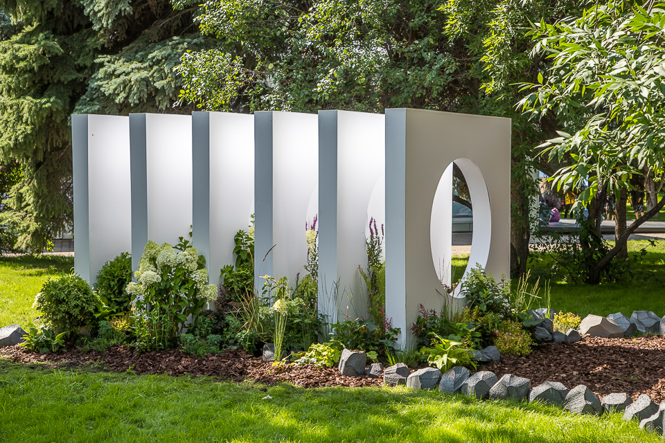 Еще одна инсталляция будущего называется «Портал времени» Переход визуализируется строгостью формы и изяществом растений Соседствует с ней философско-антропоморфный арт-объект «Сквозь время»