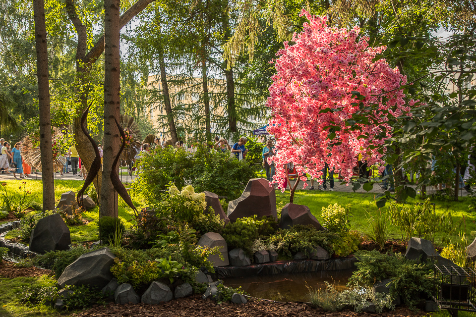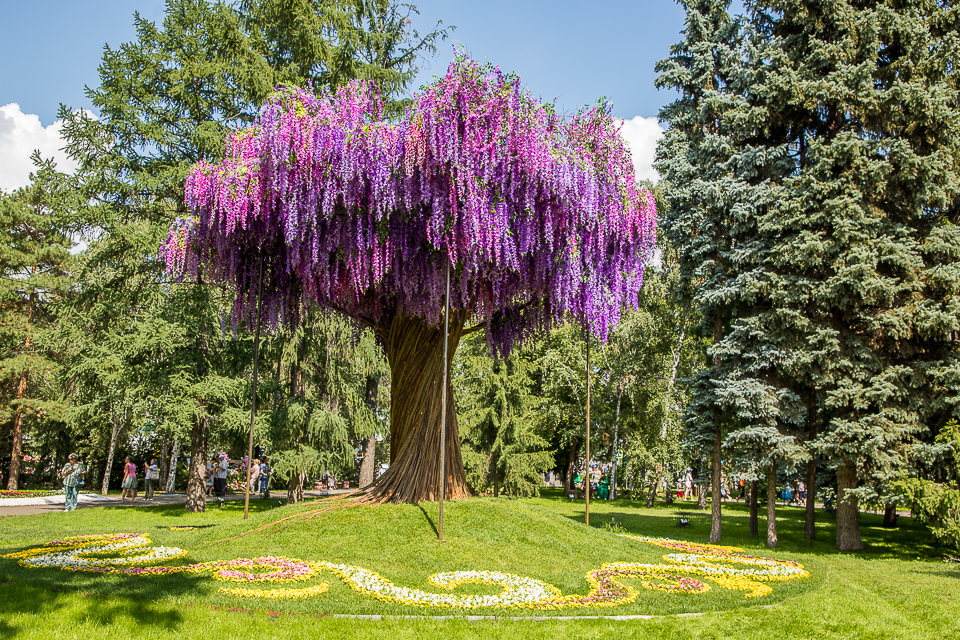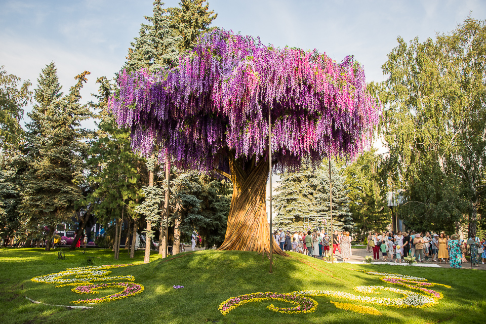 «Древо жизни» — центральная и самая крупная фигура всей экспозиции Горожане сравнивают ее с гигантским деревом из известного фильма Диаметр кроны — 6 метров, в ней сочетаются живые и искусственные цветы