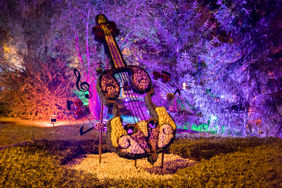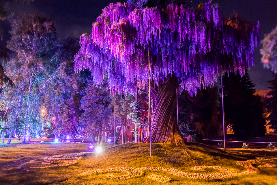 «Флора» вечерняя заслуживает отдельного внимания Инсталляции преображаются в свете цветных огней причудливой формы Давайте запомним ее такой — яркой, масштабной и способной удивлять!