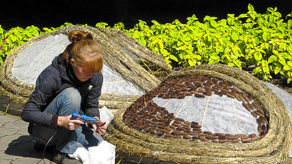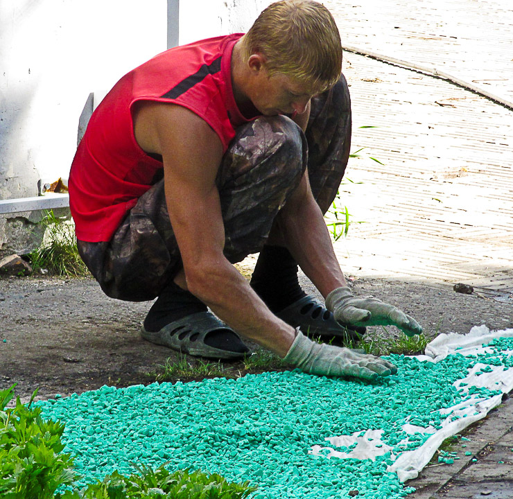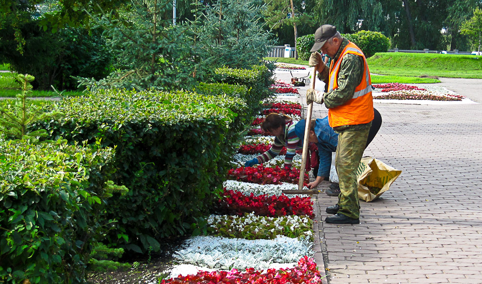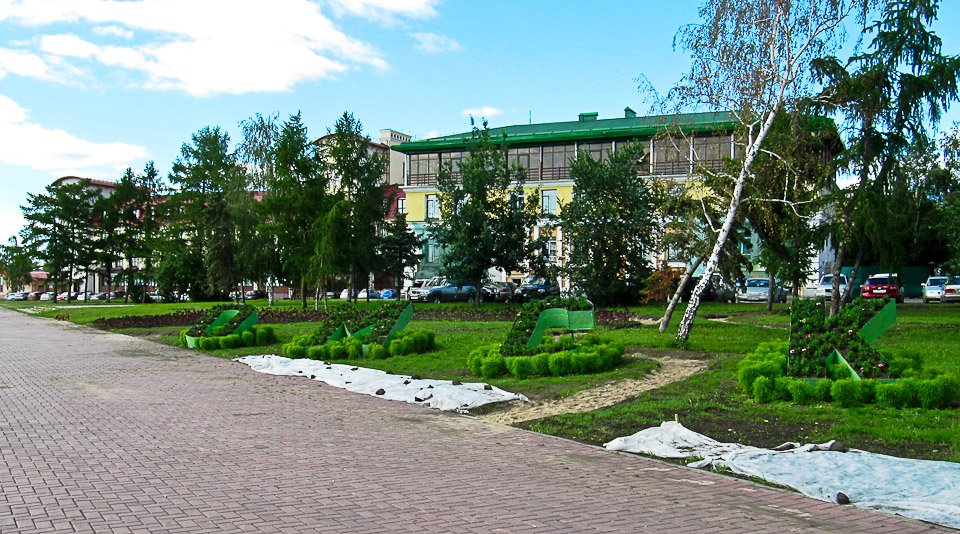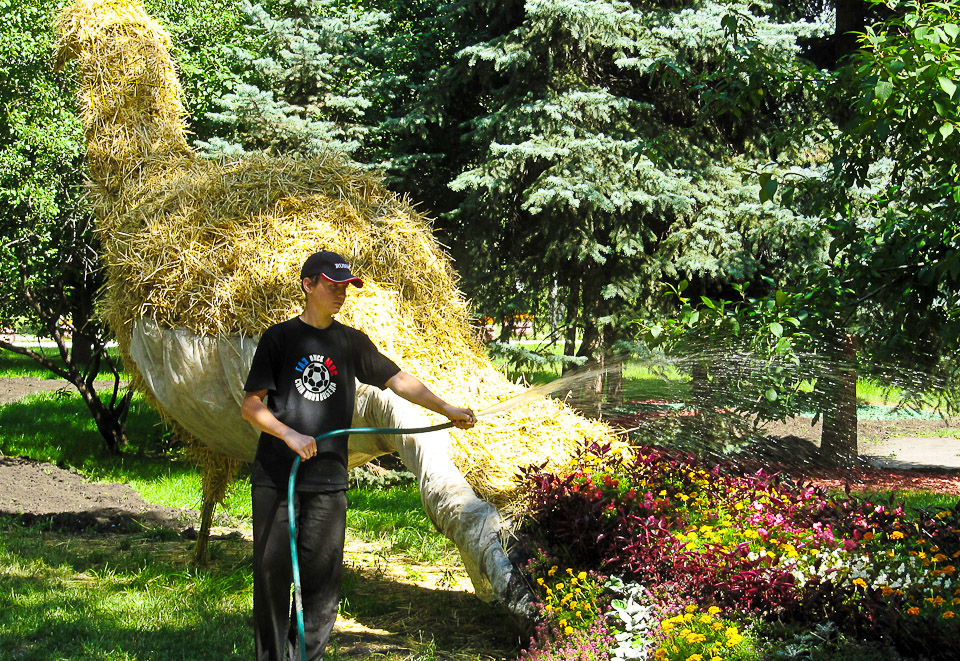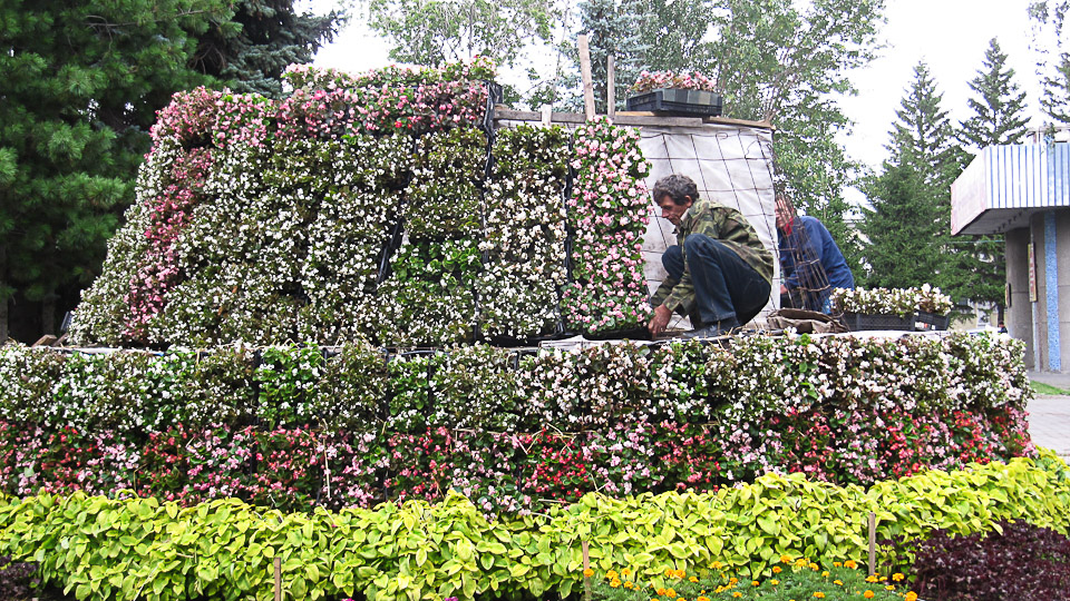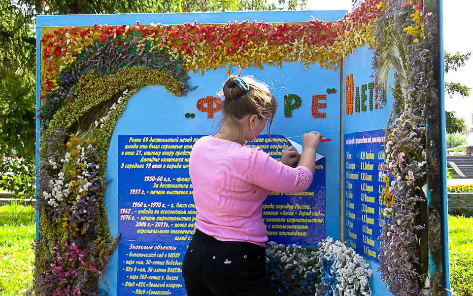 Первый этап работы проходит в кабинетах, цехах и теплицах. Разрабатываются эскизы и дизайн оформления территории, делаются каркасы для объемных фигур, выращиваются цветы, которые украсят экспозицию, заготавливается инертный материал. Это длительная и незаметная горожанам работа. И только накануне открытия выставки специалисты переходят к последнему этапу подготовки, который могут наблюдать омичи — оформление скверов и набережной.