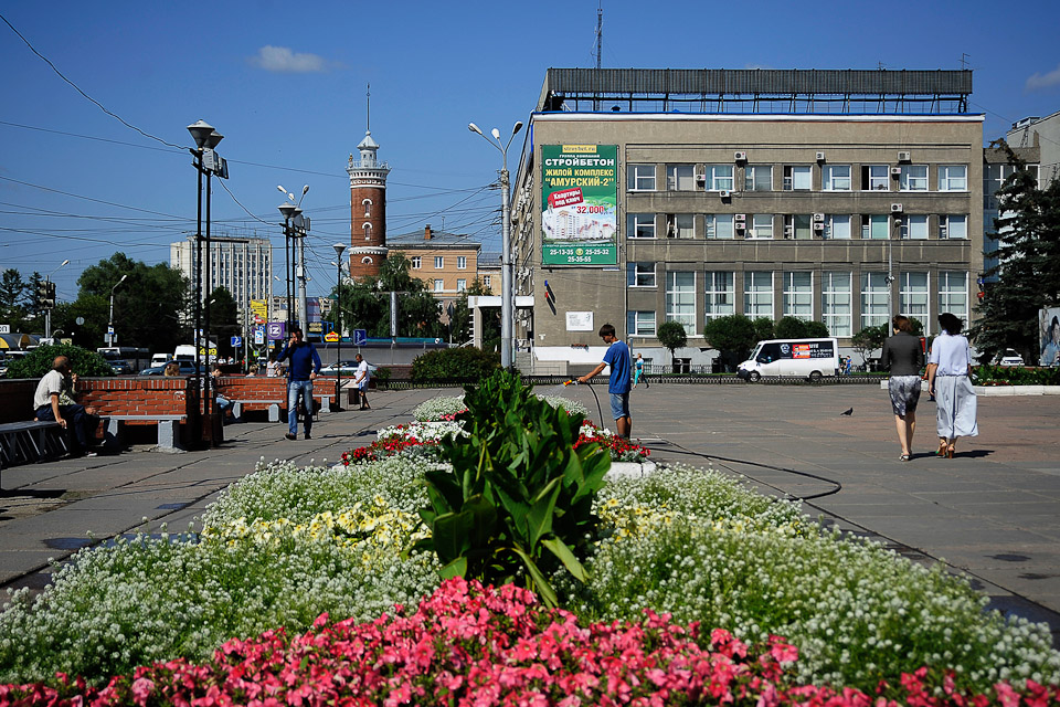 Цветочное оформление площади возле парка 30-летия ВЛКСМ
