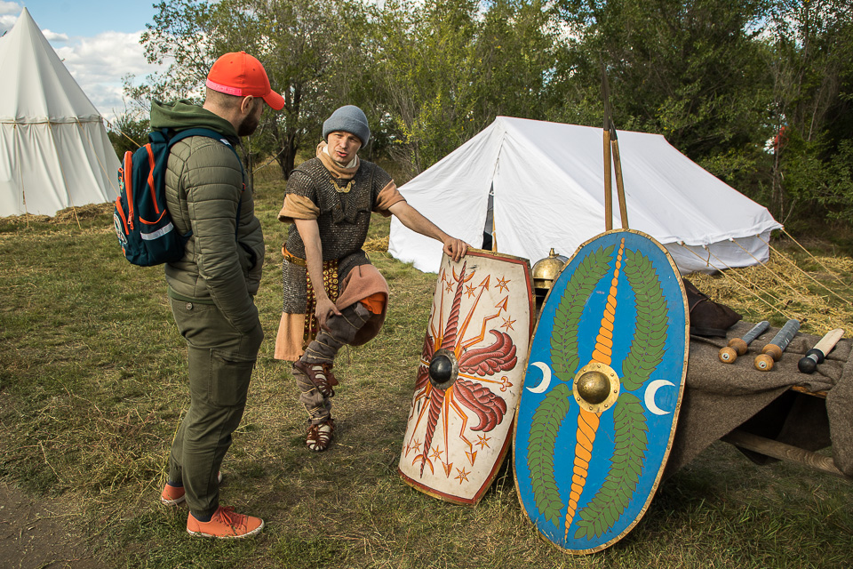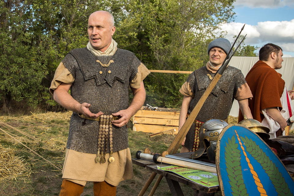 Воины Римской империи демонстрируют оружие и амуницию