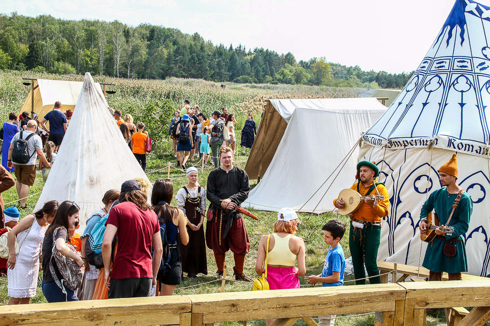 На поляне в парке Победы раскинулись шатры лагеря живой истории