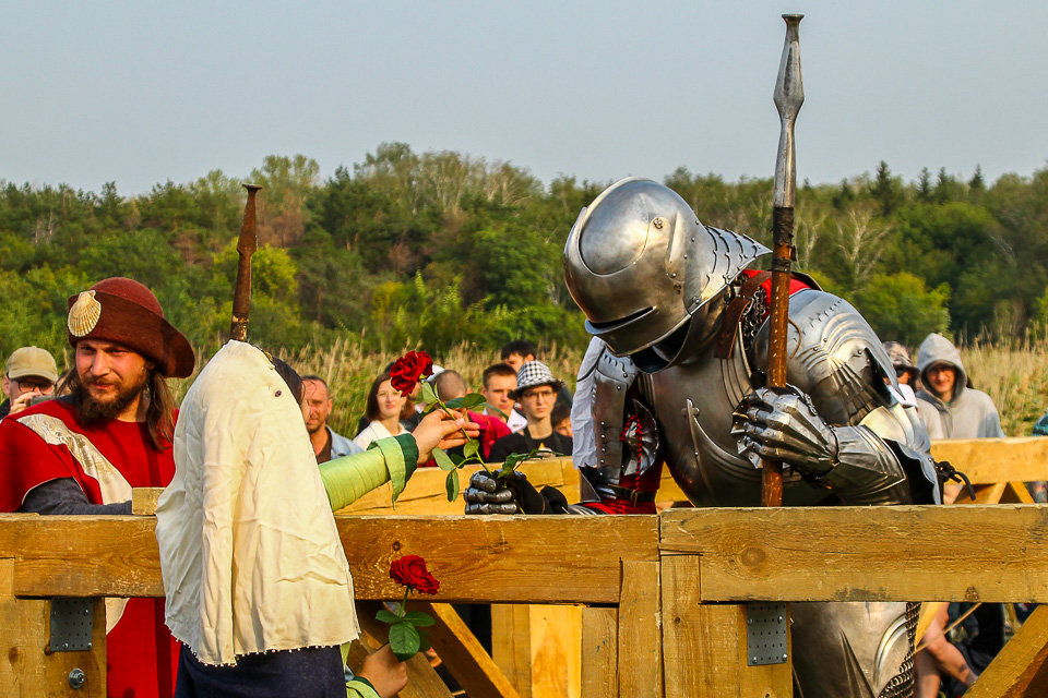 Прекрасные дамы наблюдают за поединками и могут одаривать бойцов розами