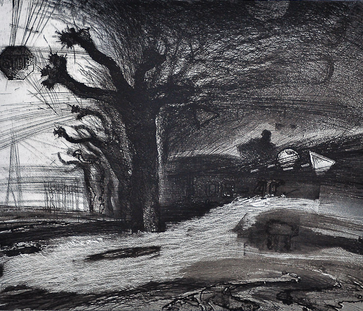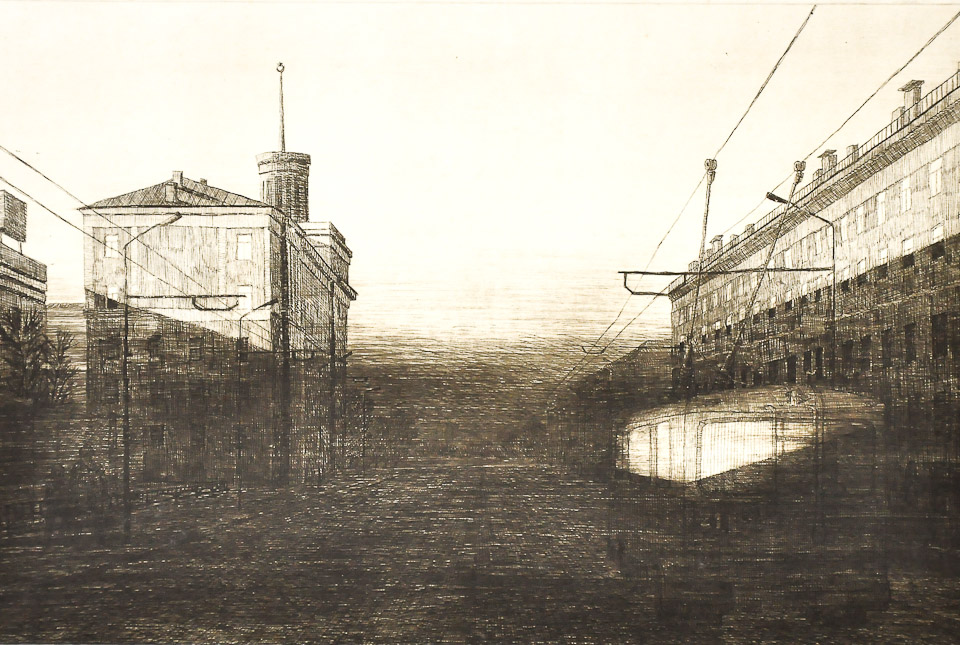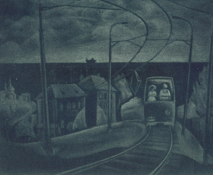 Павел Абрамов. Последний трамвай. 1995. Бумага, меццо-тинто
