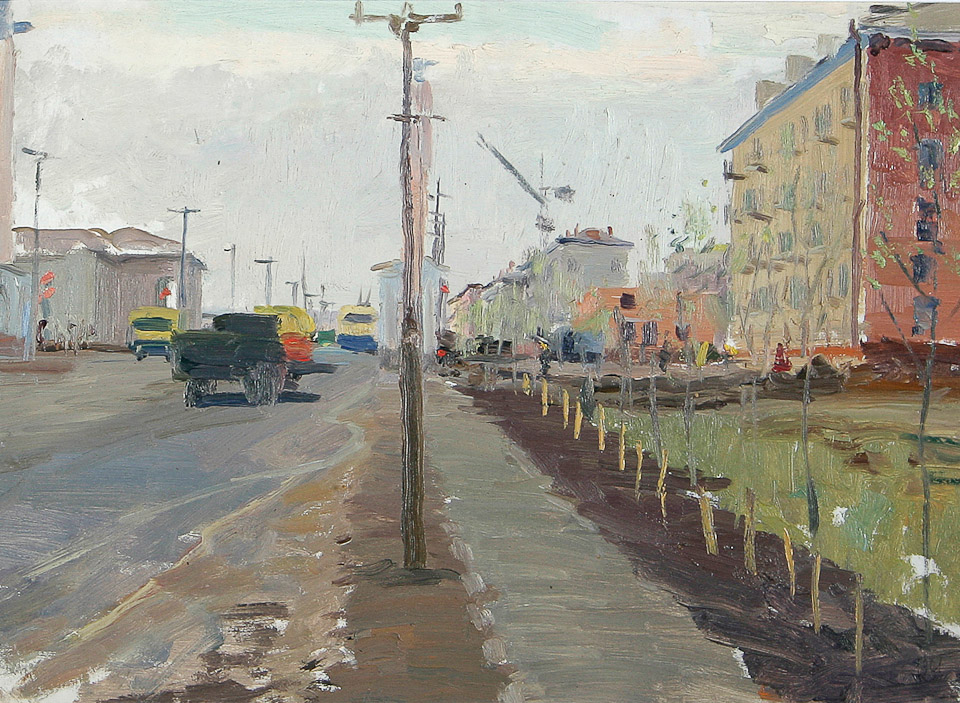 Василий Белан. Весна. Городской мотив. 1963. Холст на картоне, масло