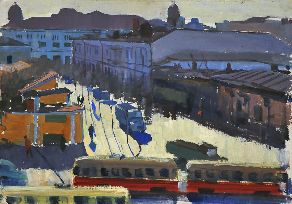 Василий Белан. Проспект Мира. Этюд. 1961. Картон, масло