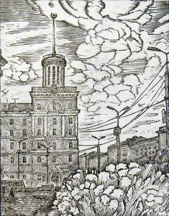 Александр Галковский. Ленинградская площадь. 2013. Бумага, линогравюра