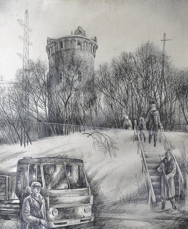 Николай Герасимов. Старая башня. 1978. Бумага, шариковая ручка