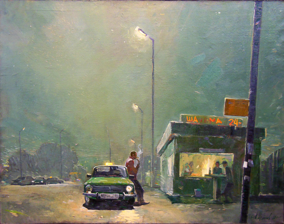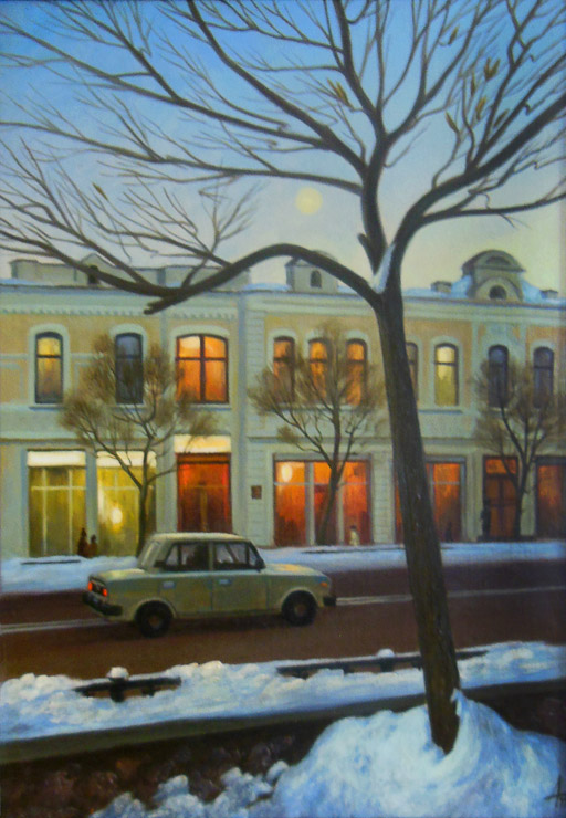 Анатолий Гурганов. Омск. Вечером у «Шика». 1999. Холст, масло