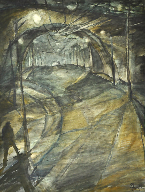 Владимир Калистратов. Одинокий прохожий. 1989. Бумага, гуашь