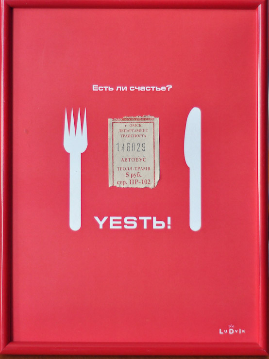 Надежда Людвик. Серия «Счастье». Часть II «Счастье YESть». 2003. пластик, металл, оргалит, бумага, клей, компютерная графика, печать, вставка