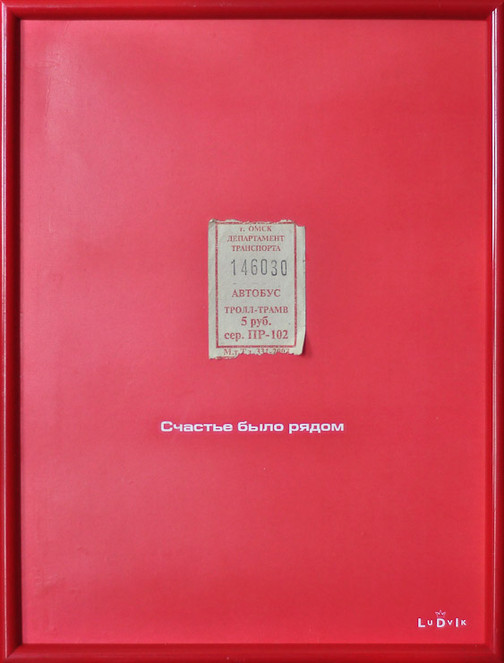 Надежда Людвик. Серия «Счастье». Часть III «Счастье было рядом». 2003. пластик, металл, оргалит, бумага, клей, компьютерная графика, печать, вставка