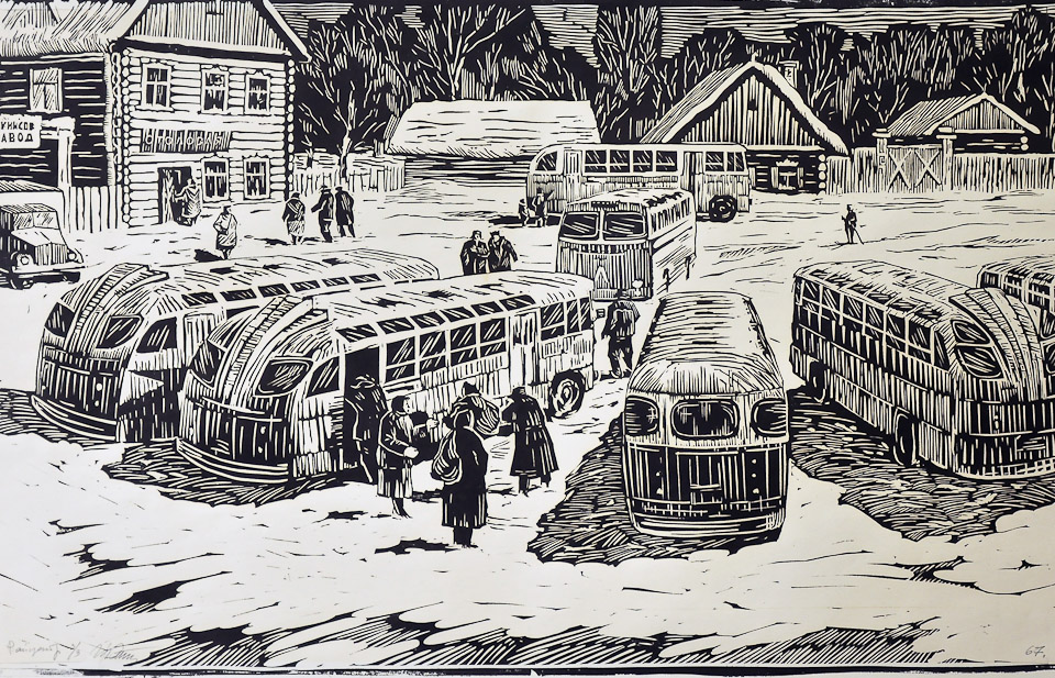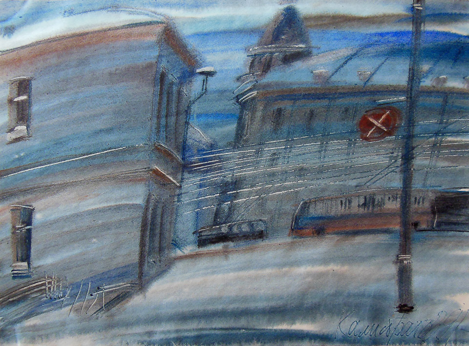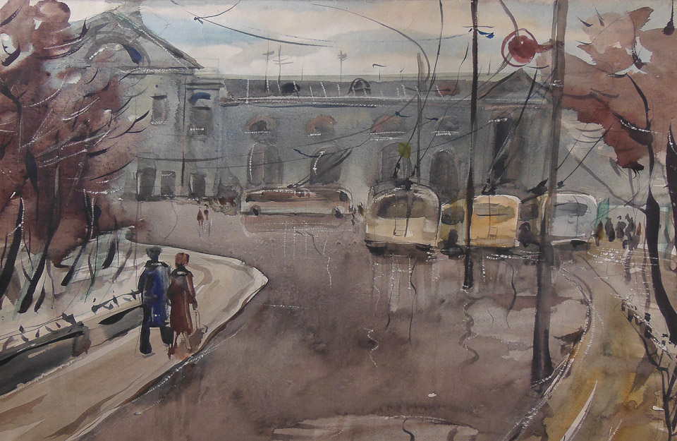 Римма Камкина. Последний автобус. 1978. Бумага, акварель