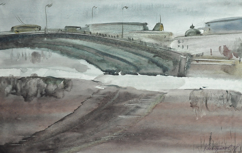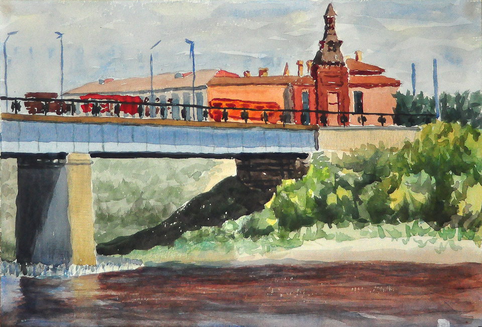 Василий Белан. Железный мост. 1963. Бумага, акварель
