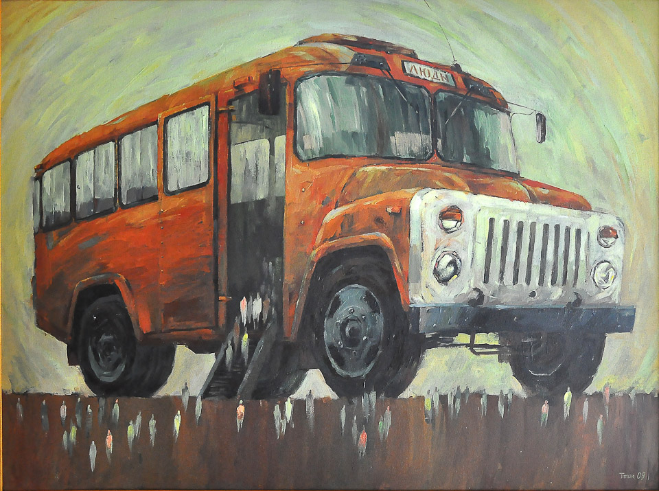 Тимур Инсинбаев. Триптих «Оранжевый автобус». Люди. 2009. Оргалит, масло