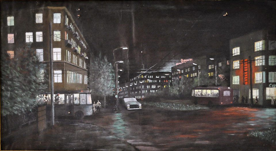 Ульян Латышкин. Омск ночной. 1970-е. Ткань, масло