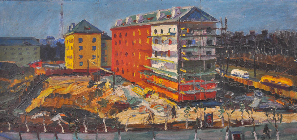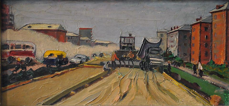 Юрий Овчинников. Строительство университетской дороги. 1950-70. Картон, масло
