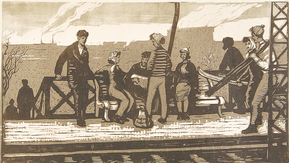Анатолий Чермошенцев. У моста. 1964. Бумага, линогравюра