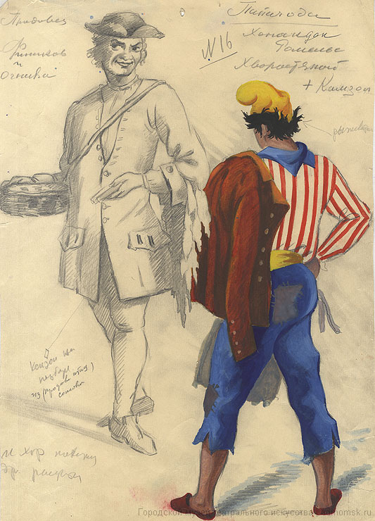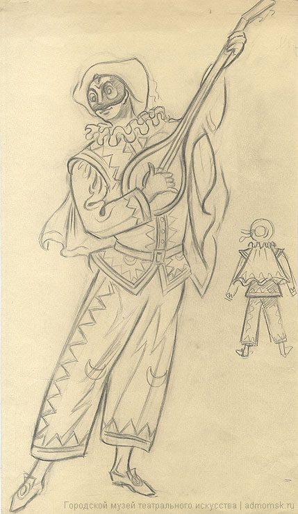 В фотоальбоме представлены эскизы костюмов к оперетте Иоганна Штрауса «Ночь в Венеции», премьера которой в Омском театре музыкальной комедии состоялась 26 июня 1965 года.