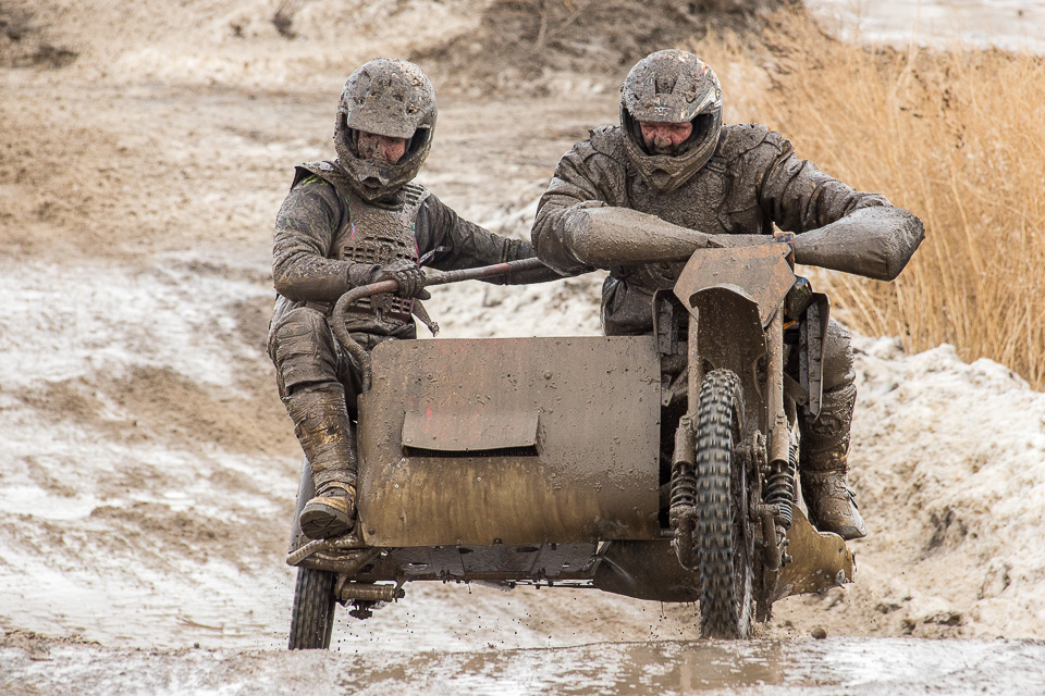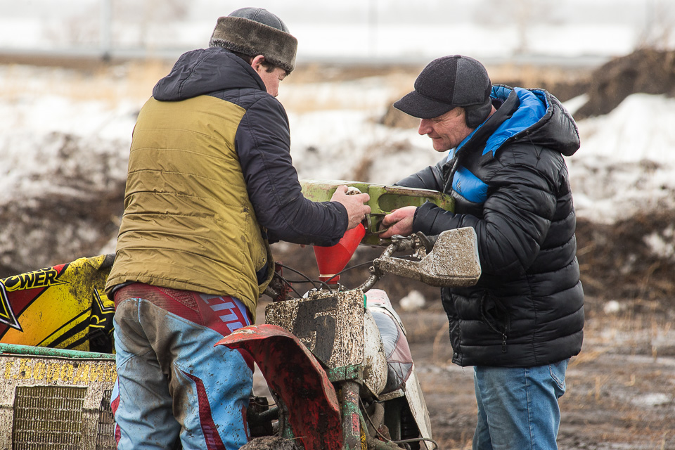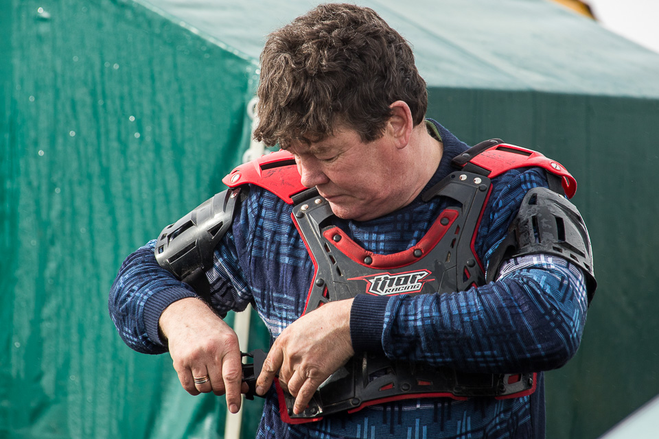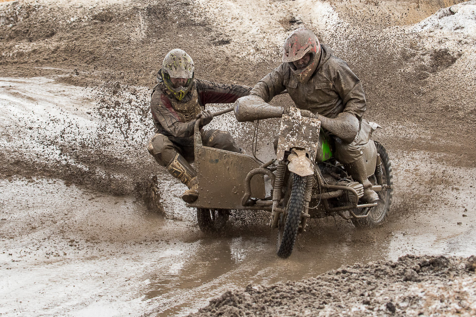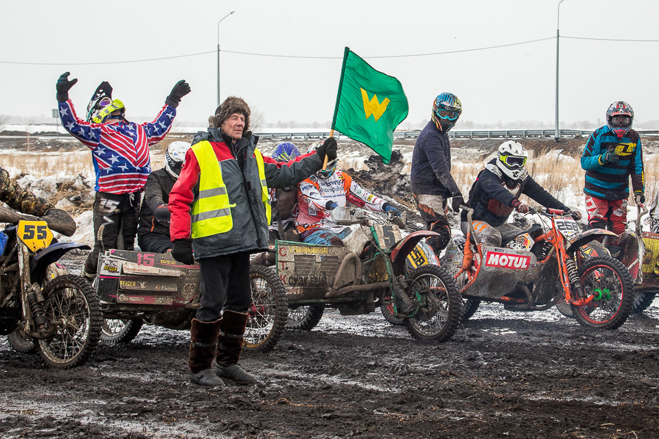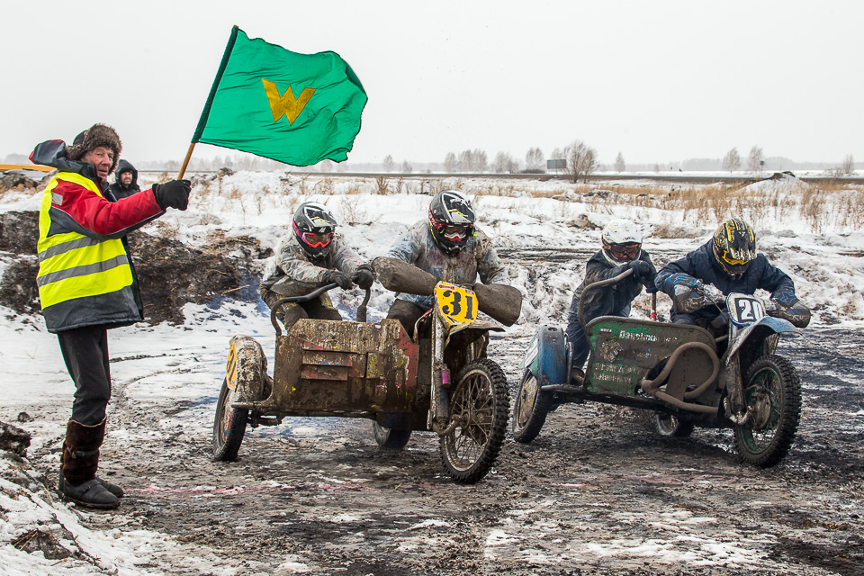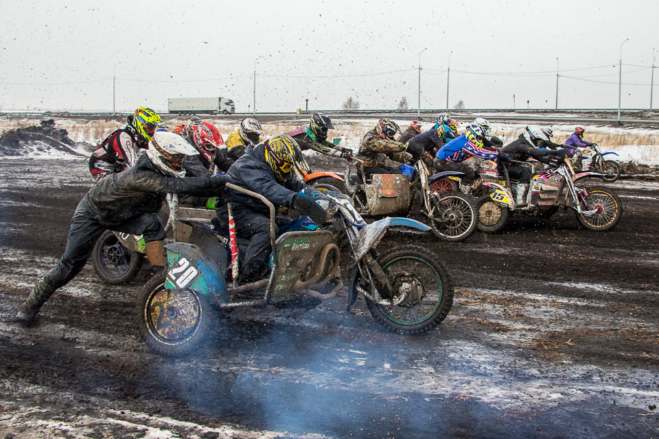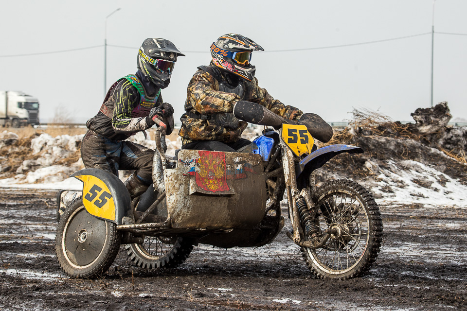В предстартовом парке идет подготовка к заездам мотоциклов с колясками