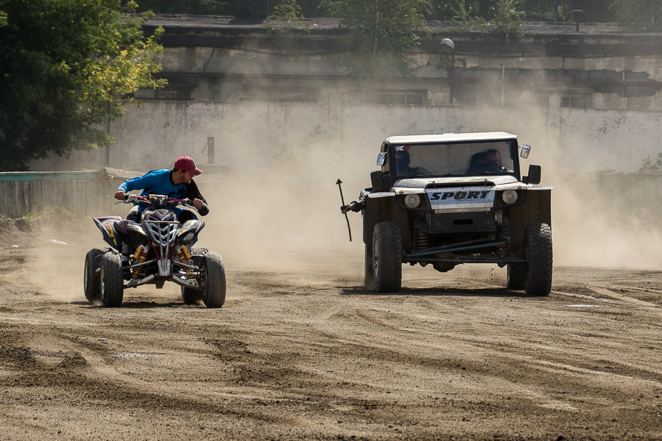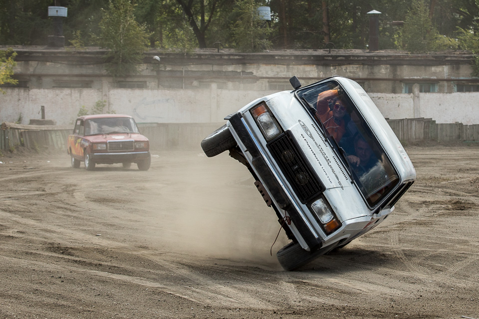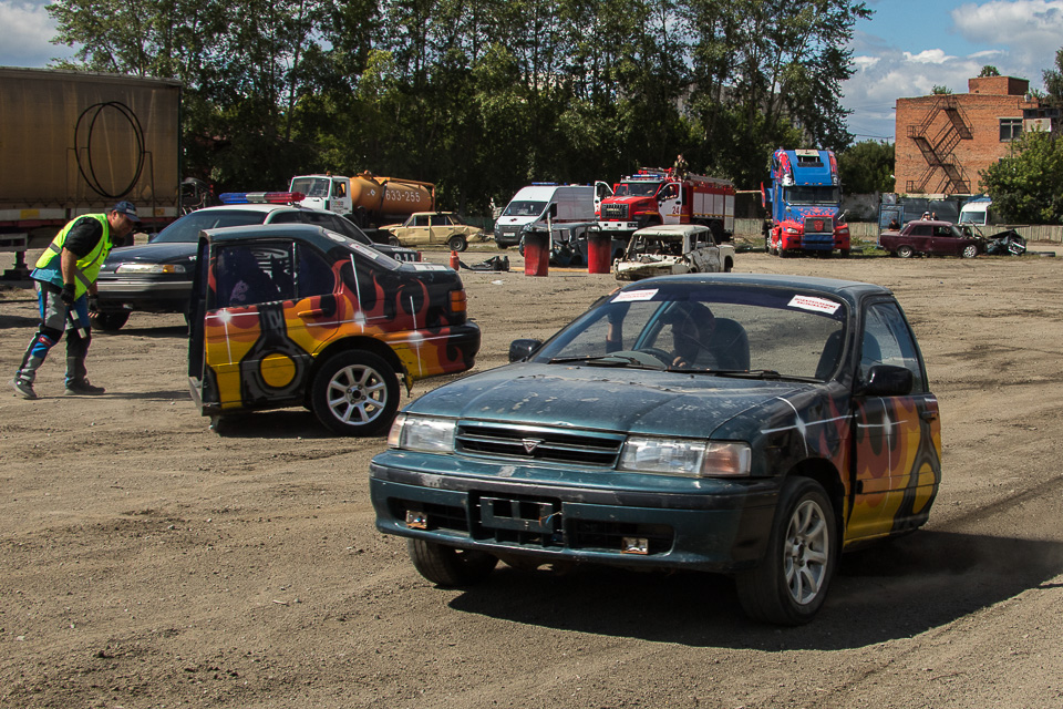 Добровольцев посадили в машины и прокатили по-каскадерски!