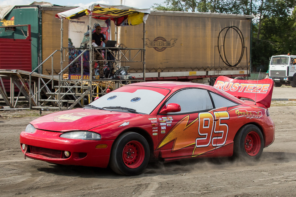 Отдельное состязание для девушек: после заезда первой поцеловать героя мультфильма