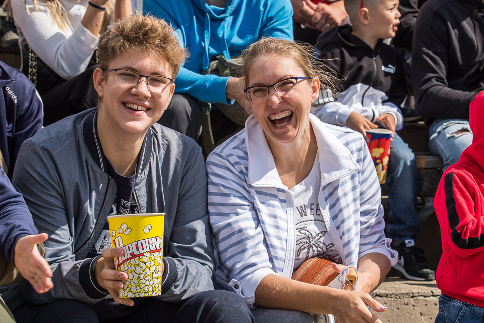 Трюк выполняется максимально аккуратно, ведь до зрителей — считанные метры