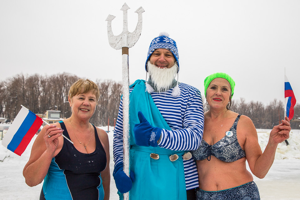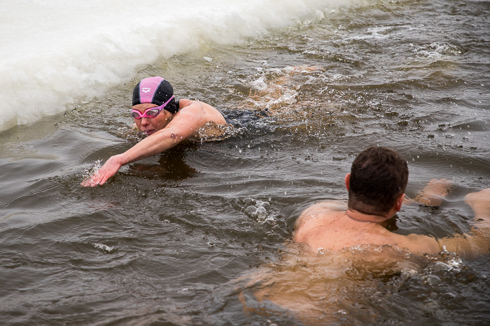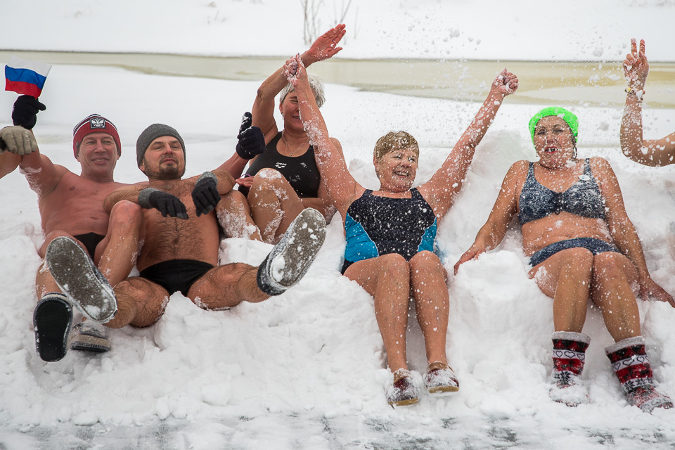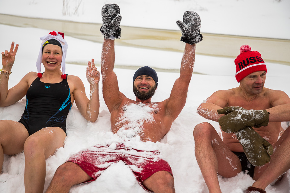 Массовое окунание: самые стойкие проводят в ледяной воде несколько минут