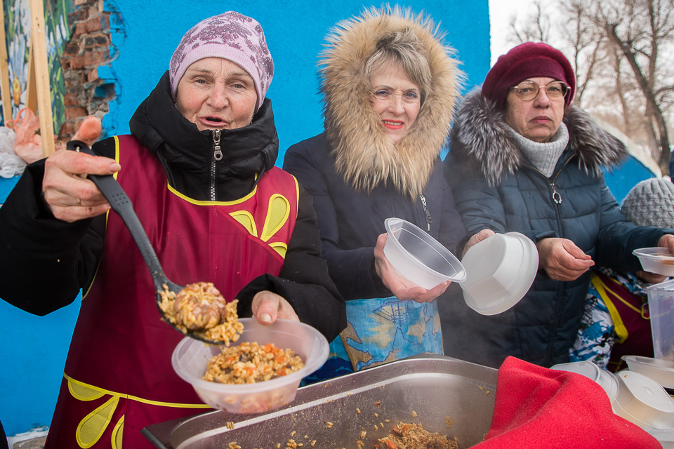 Всех участников акции угостили чаем и пловом, который моржи приготовили сами