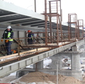 «С помощью домкратной системы через маслостанцию приподняли на 16 милиметров пролётные строения, установили их на так называемые «тумбочки», убрали старые подферменники и забетонировали новые. На следующей неделе поставим новые подвижные опорные части — это покупные изделия от российского производителя «АльфаТех». А затем опустим пролёт», — добавил Игорь Шестаков.