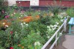 Богатый цветник под окнами дарит хорошее настроение всем жителям дома.