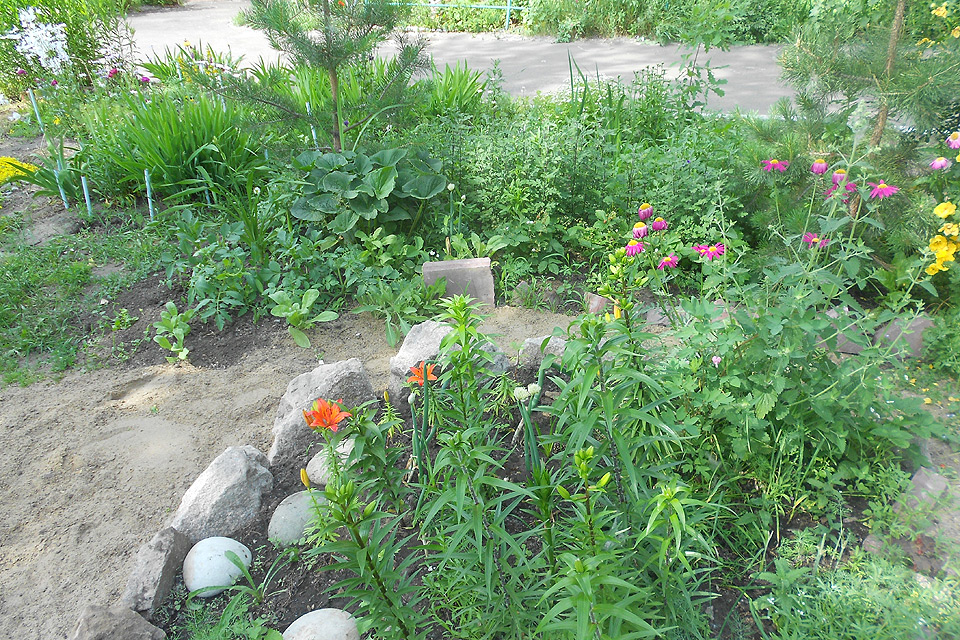 Если вы гуляете по 5-й Кордной, непременно зайдите во двор дома № 8, чтобы посмотреть на территорию, заботливо облагороженную жителями. Главную скрипку играет старшая по дому Алла Брызгалова. Цветы, камни, лоза — все это превращается в красивые ландшафтные композиции. С каждым годом площади, занятые цветами, увеличиваются, а к благоустройству подключаются активисты из других домов.