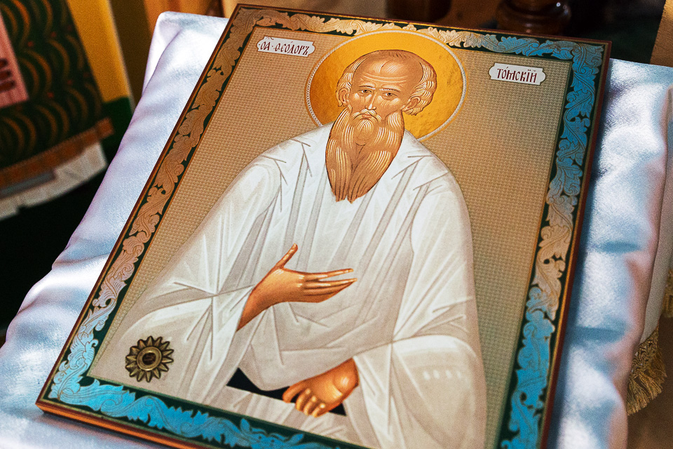 Стены храма и заалтарное пространство — настоящая сокровищница: икона Святого преподобного Феодора Санакарского