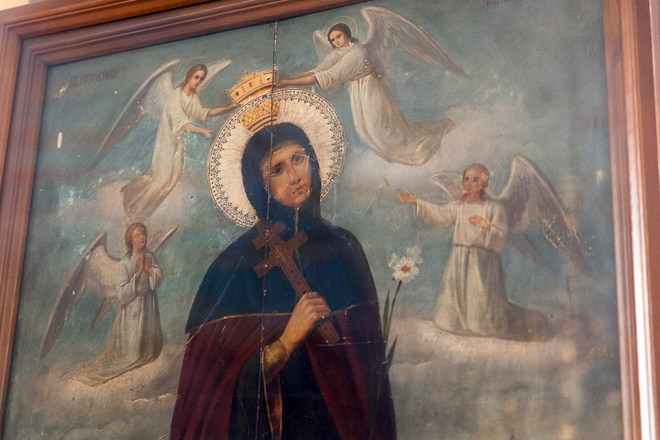 Старинная икона приковывает к себе взгляд. Светлый, но строгий женский лик буквально напитан великой силой. Образ участвовал в крестном ходе на освящении самого собора