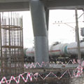 «Монтаж пролетного строения путепровода проводится методом продольной надвижки, — пояснил главный инженер СМУ-1 НПО «Мостовик» Иван Гребенников, — Это позволит производить работы с минимальным перекрытием железнодорожного движения. В верхней части насыпи подхода со стороны улицы Суворова смонтирован стапель, на котором будет производиться укрупнительная сборка металлических блоков пролета. Длина каждой 12-тонной балки — более 8 метров. В общей сложности будет смонтировано 78 металлических балок суммарным весом свыше 700 тонн. Все металлоконструкции пролетного строения изготовлены ЗМК НПО «Мостовик». По расчетам строителей средняя скорость надвижки составит около 8 метров в неделю».