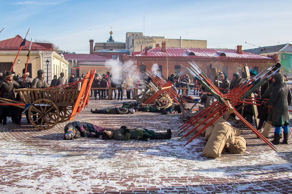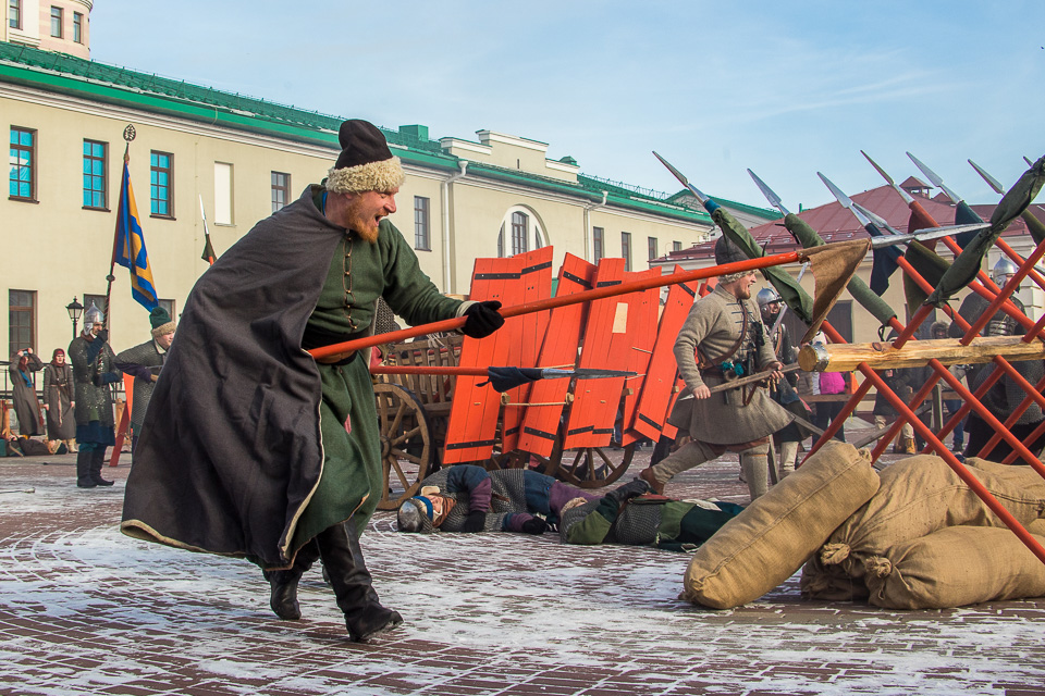 «Служилые люди Сибири» реконструировали эпизод Московской битвы, которая стала важнейшим событием Смутного времени и предопределила разгром польско-литовских интервентов русским ополчением. Затем у Тобольских ворот был развернут лагерь живой истории под открытым небом.