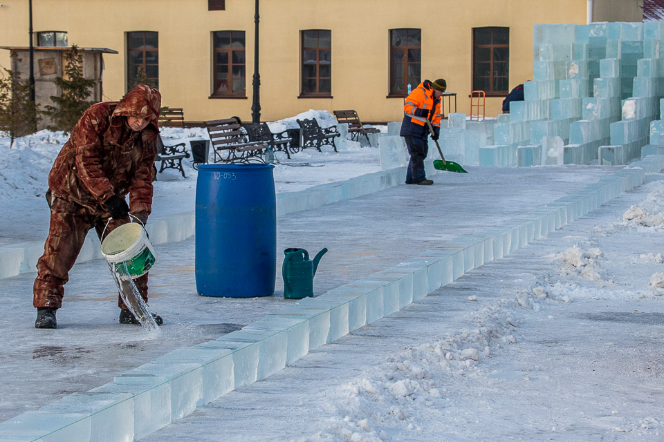 В этом году исторический центр станет главной новогодней локацией города. Полным ходом идет возведение горок и ледовых скульптур, которые уже совсем скоро украсят тысячи праздничных семейных фотографий омичей.