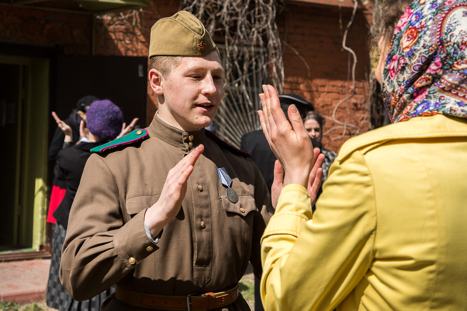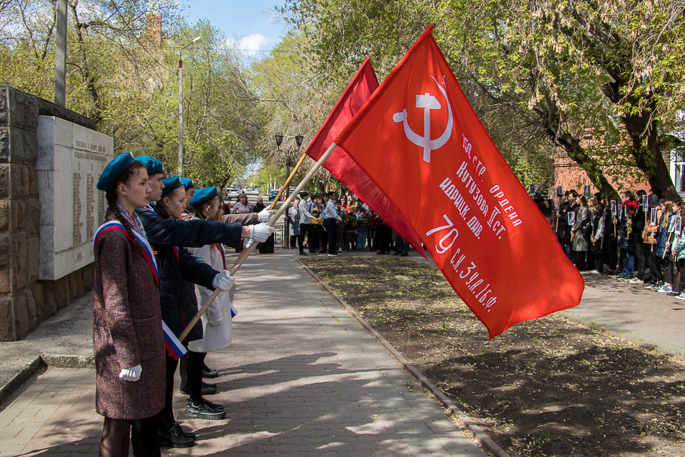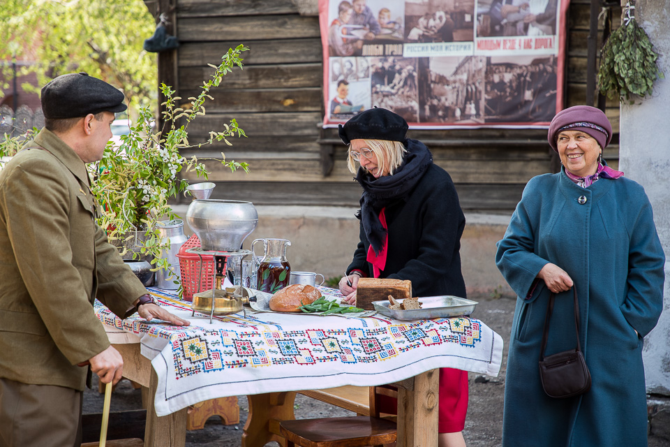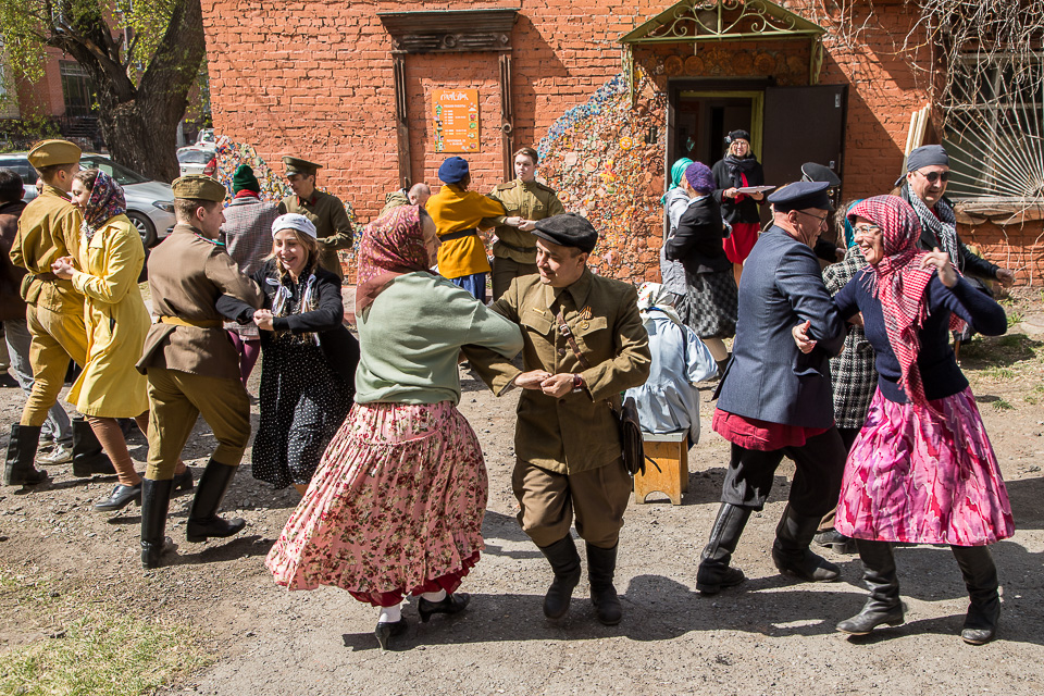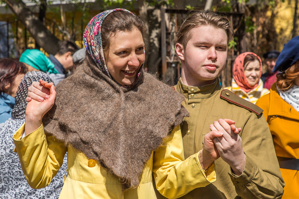Необычную предпраздничную программу к 9 Мая представили омское отделение военно-исторического клуба «Наследие», КДЦ «Иртыш» и студия «Скворечник»: после митинга у стелы погибшим на войне выпускникам и учащимся школы № 37 во дворе старинных слободских домов по улице Почтовой прошел камерный театрализованный концерт «Встречай Победу».