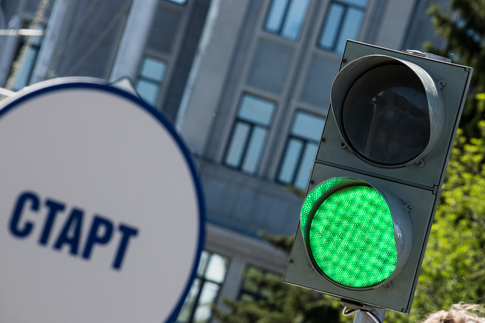 Зеленый сигнал светофора начинает отчет времени прохождения дистанции
