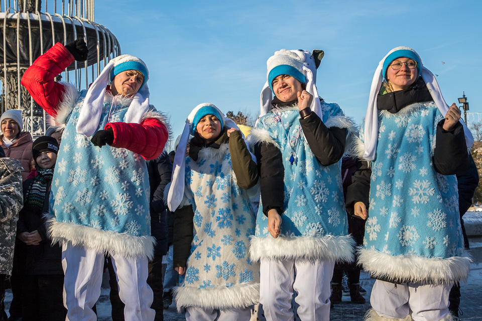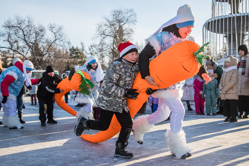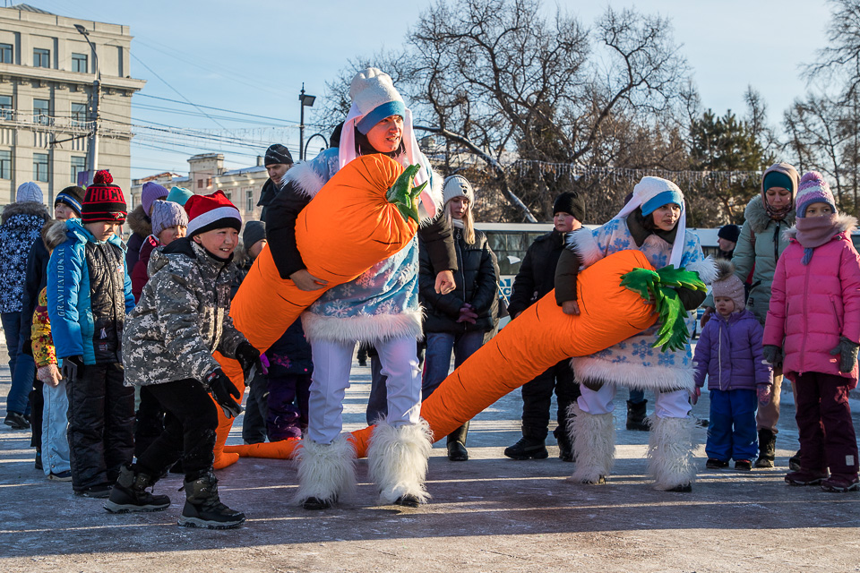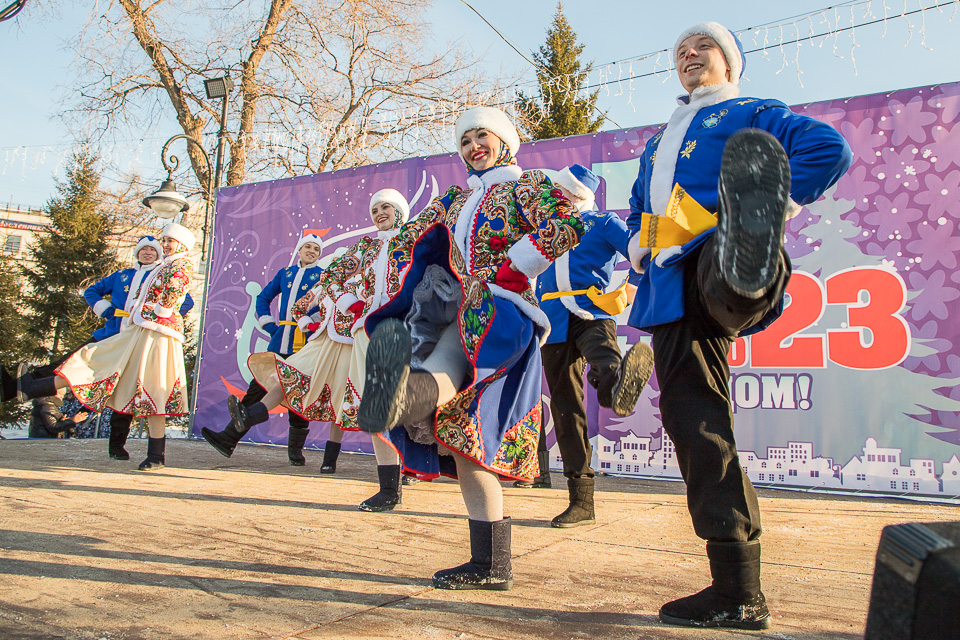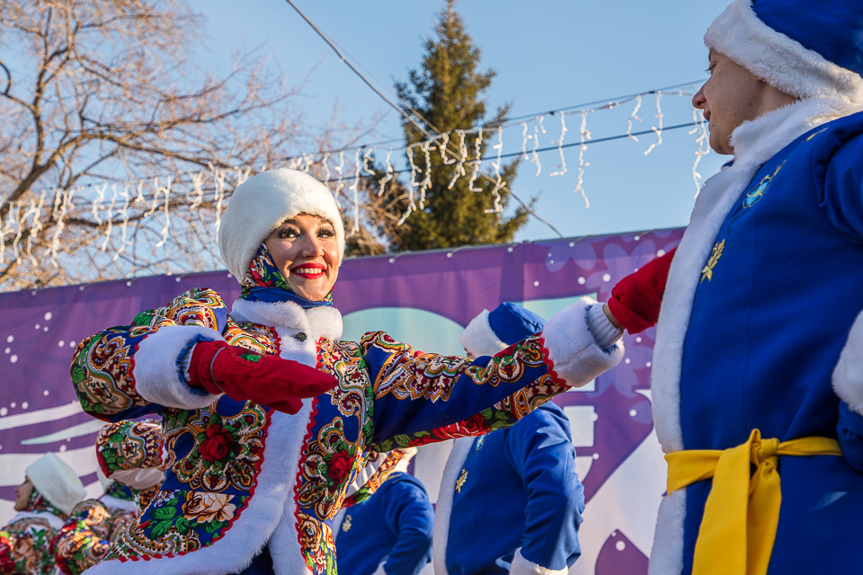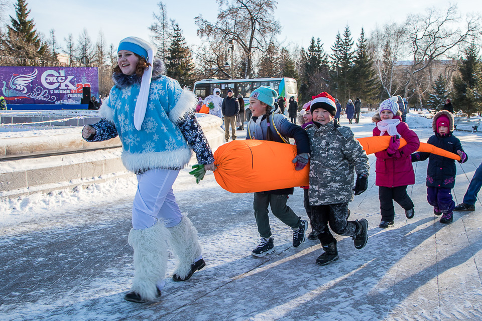 Так называлась новогодняя концертно-игровая программа, которую в солнечный выходной в сквере имени Дзержинского провели муниципальные творческие коллективы: ансамбли танца «Иртыш» и «Русь», а также артисты ГДКИ имени Красной гвардии и КДЦ «Меридиан».