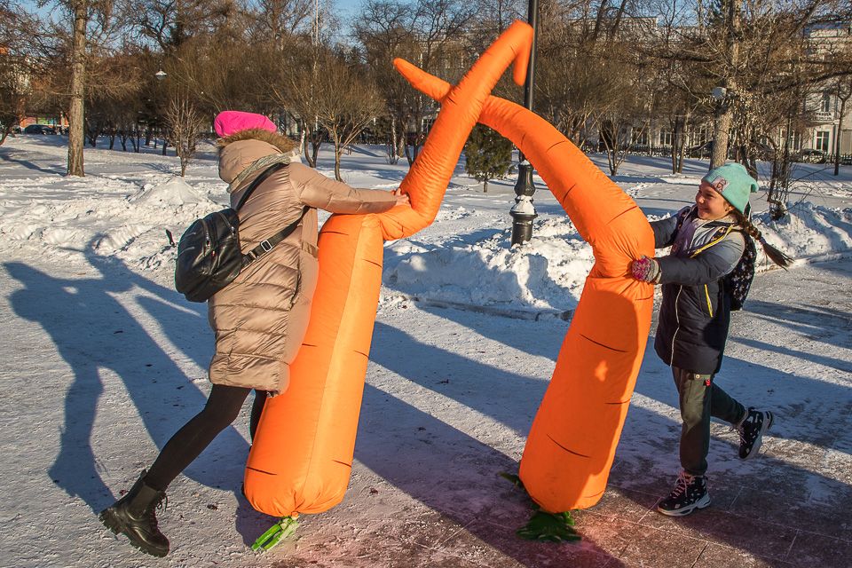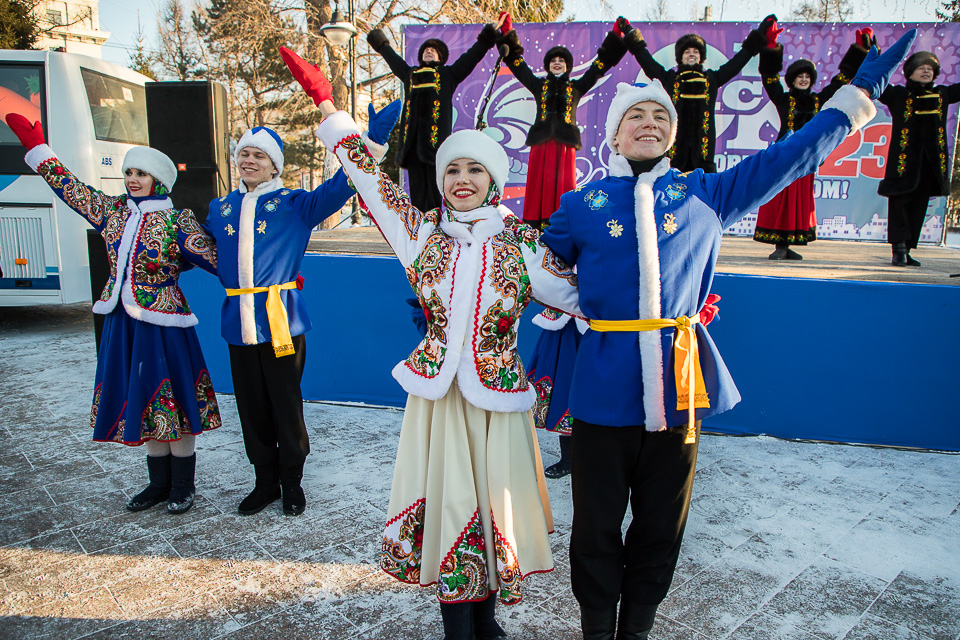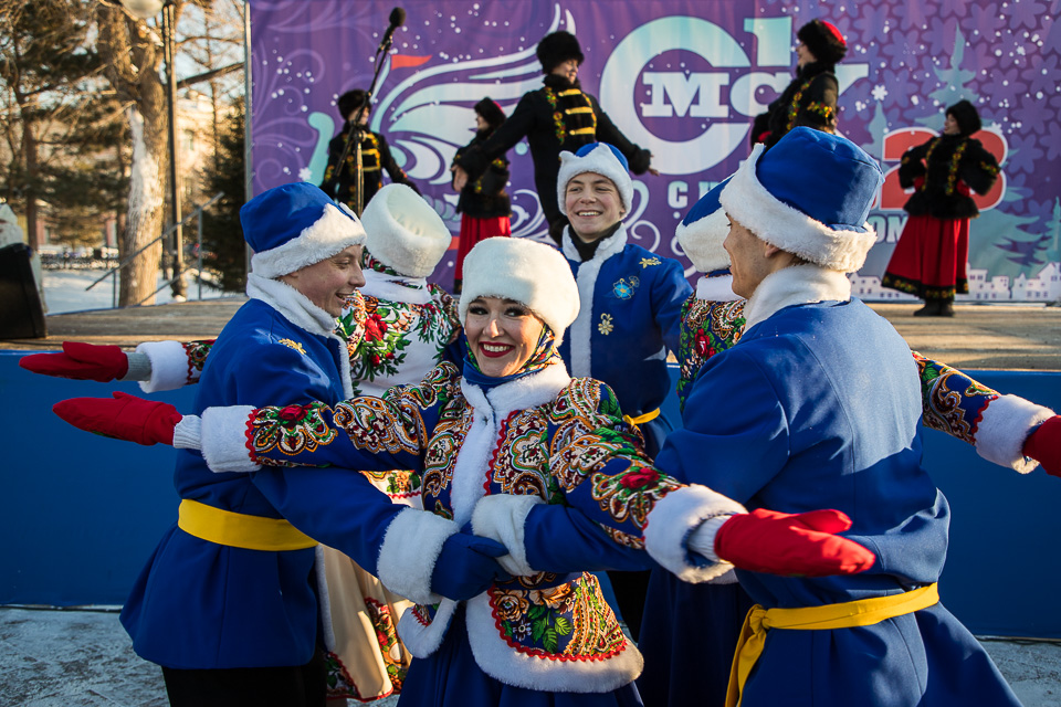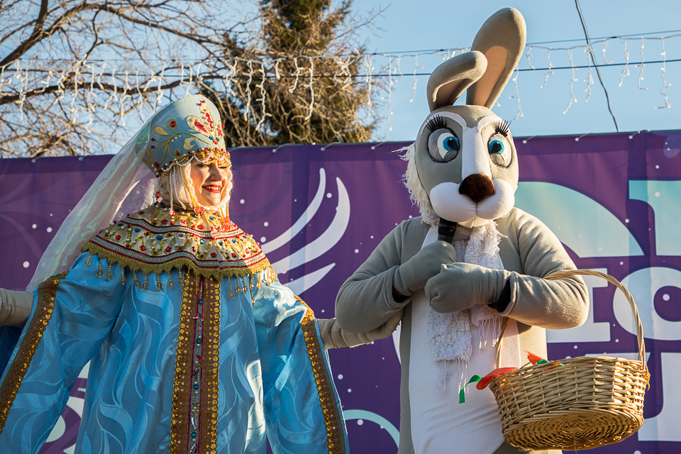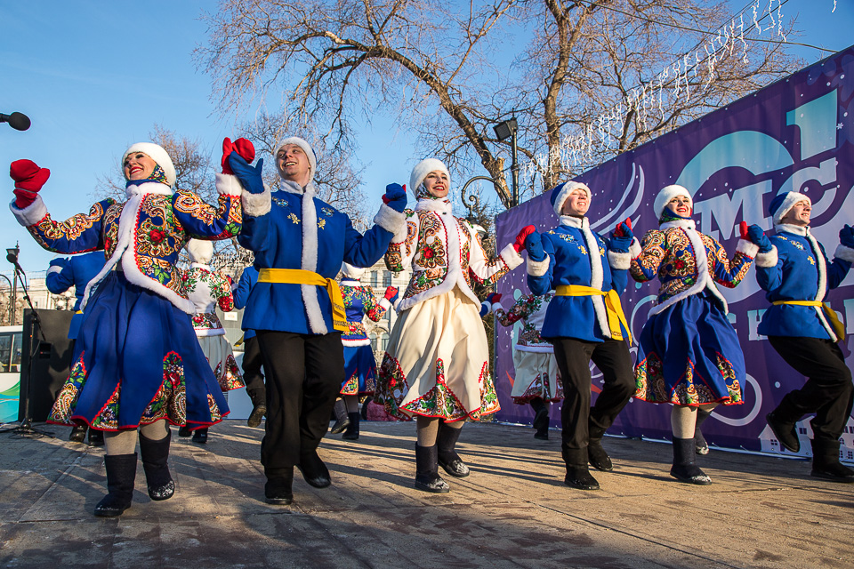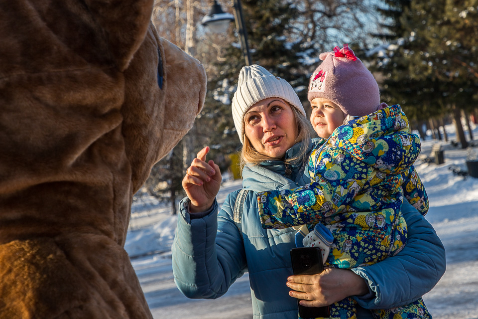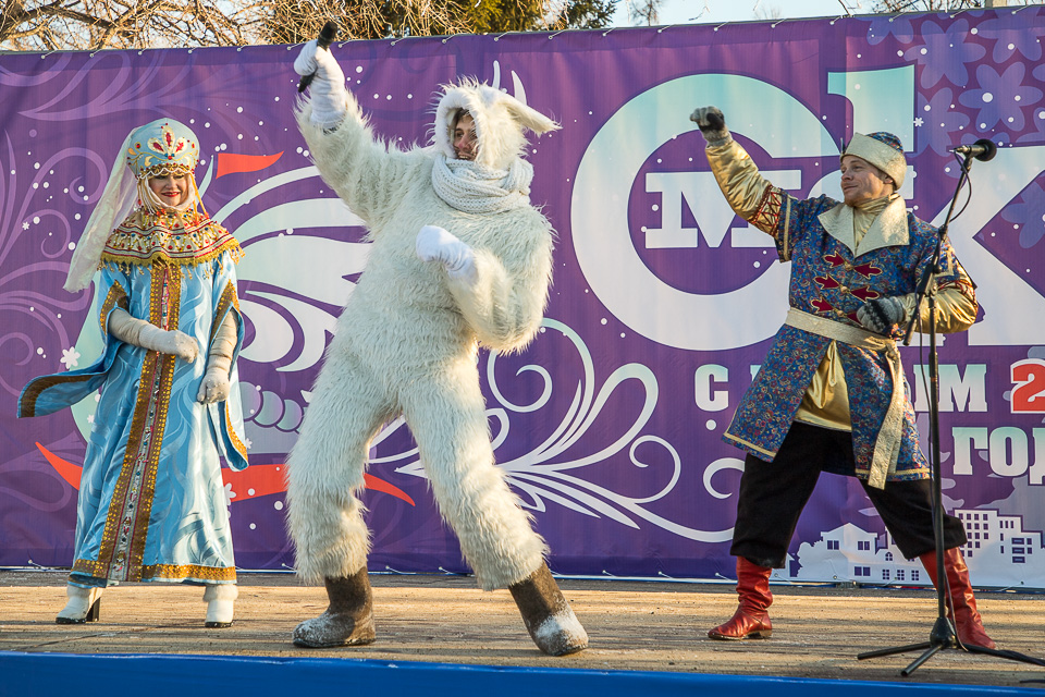 Так называлась новогодняя концертно-игровая программа, которую в солнечный выходной в сквере имени Дзержинского провели муниципальные творческие коллективы: ансамбли танца «Иртыш» и «Русь», а также артисты ГДКИ имени Красной гвардии и КДЦ «Меридиан».