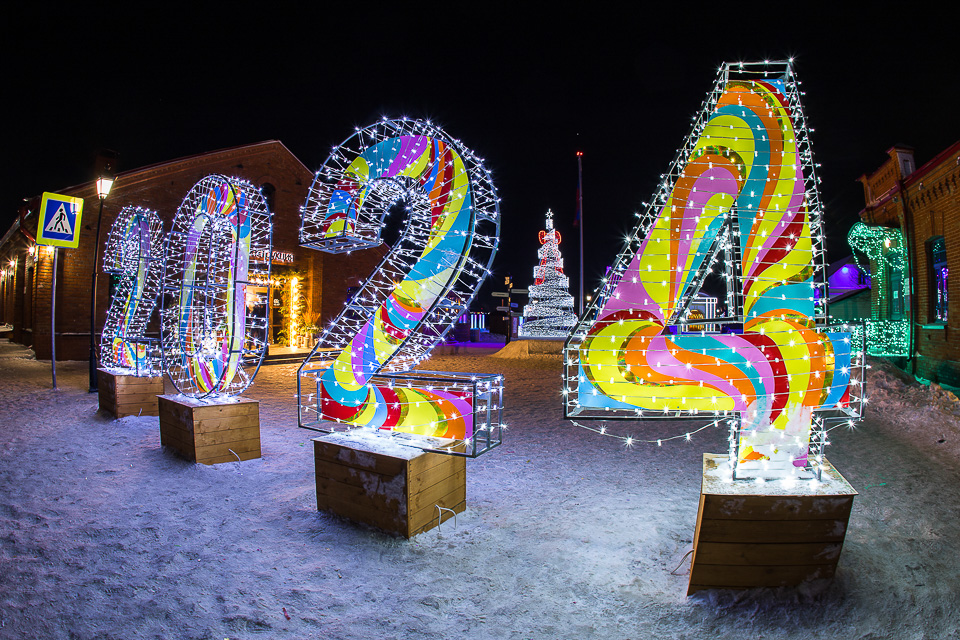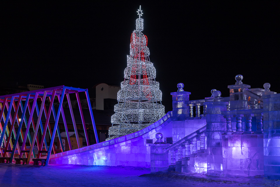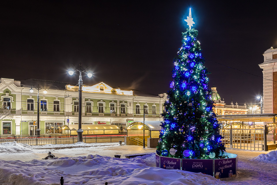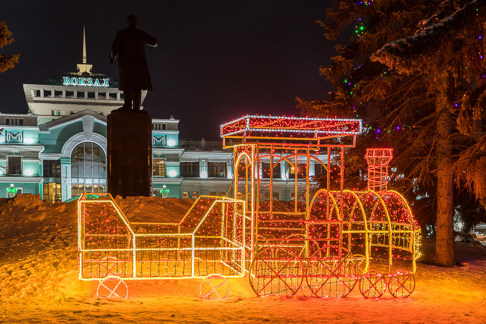 Доминанта сквера у Оми — праздничная инсталляция омского нефтезавода