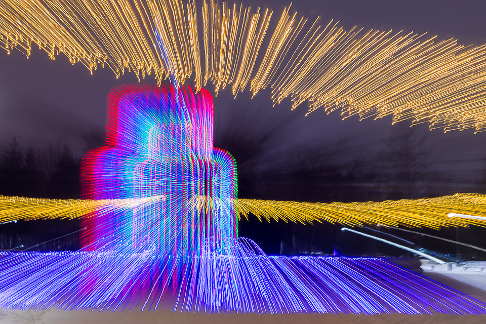 Подсветка фонтана «Изобилие» обыгрывает тему богатого застолья