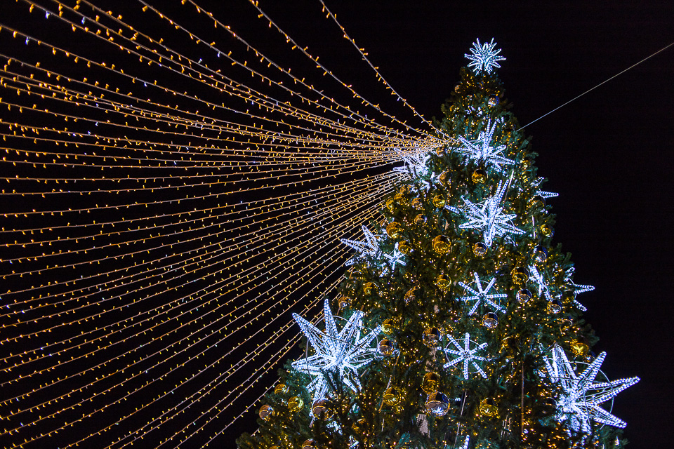 Зимой рано темнеет, но все центральные площади переливаются яркими огоньками