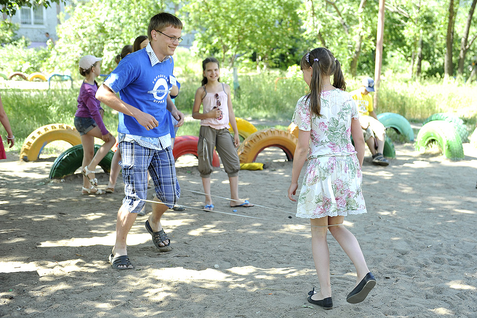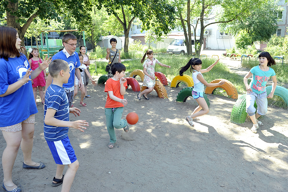 Вожатые из городского педагогического отряда и волонтёры занимаются с детьми на дворовых игровых и спортивных площадках. Чтобы организовать ребят, разнообразить их летний отдых и занять интересным делом, вожатые прошли специальную подготовку. Теперь им не составляет труда найти развлечение для детворы детсадовского и школьного возраста.